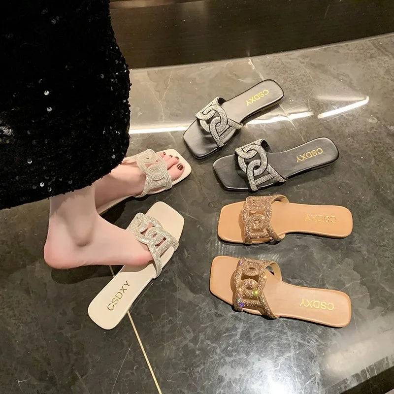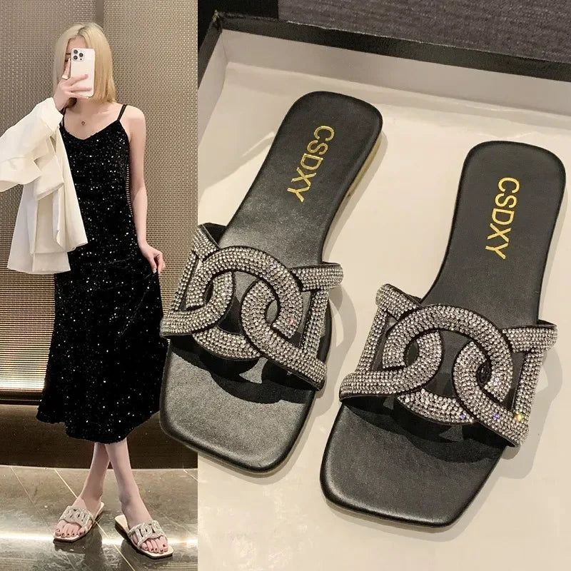 Shine brighter this summer in these stunning Flat Rhinestone Slide Sandals — the perfect mix of comfort and glam! Designed for women who love a little sparkle in every step, these trendy slip-on sandals are ideal for beach days, casual outings, or dressing up your favorite summer outfit.