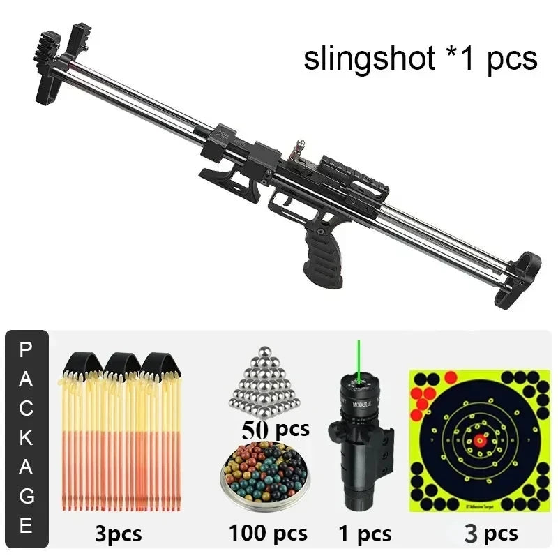 🎯 80LBS Telescopic Long Pole Slingshot with Laser Sight | All-Metal Powerful Hunting Slingshot