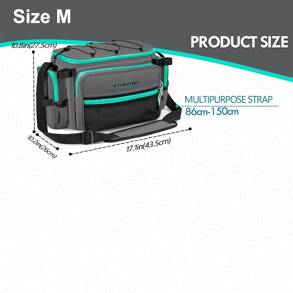 1. Strong & Waterproof: THKFISH fishing tackle bags is made of 1000D PVC material which is salt water resistant and effectively prevents water infiltration, the zippers are also waterproof and rustproof, which can effectively prevent your fishing gear and equipment from getting wet, the high-density and abrasion-resistant material ensures that your fishing tackle box organizer bag maintains a long term excellent and sturdy appearance.