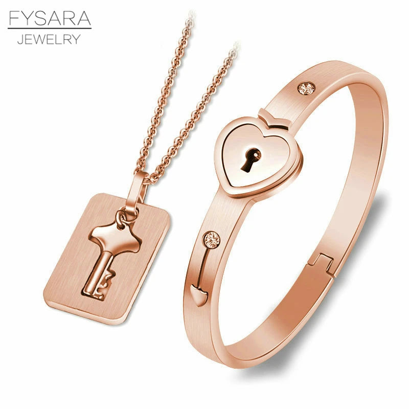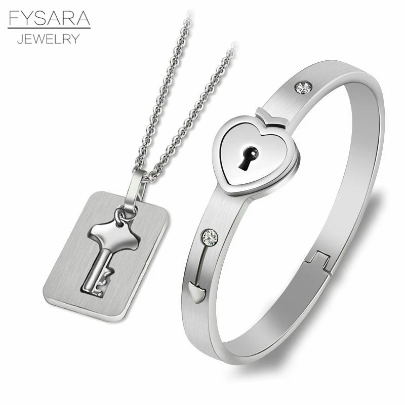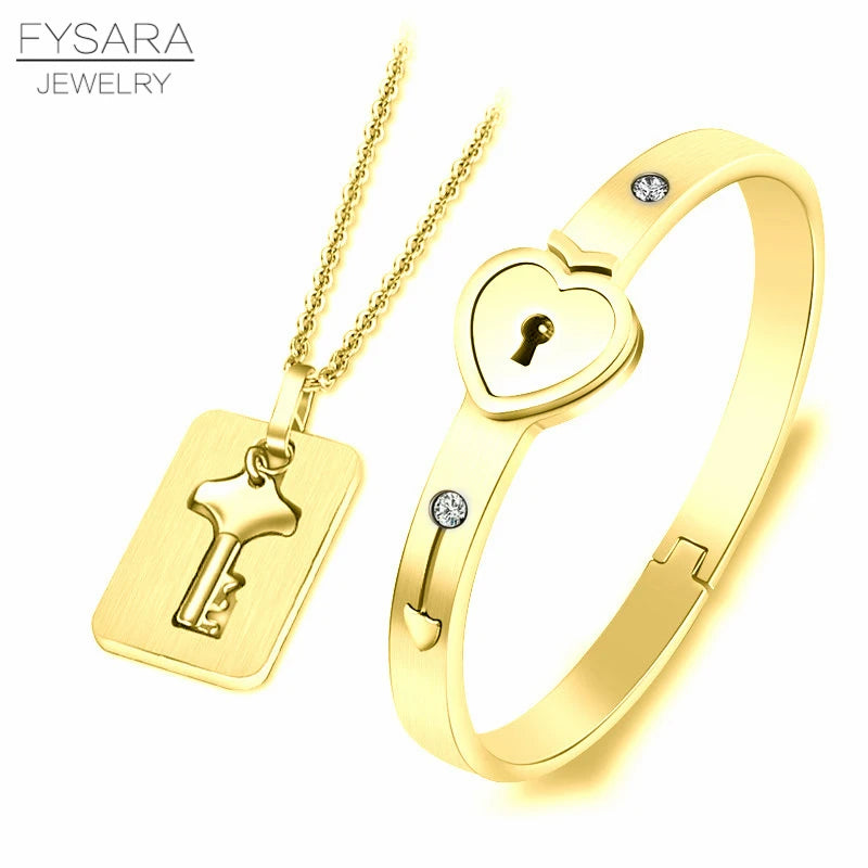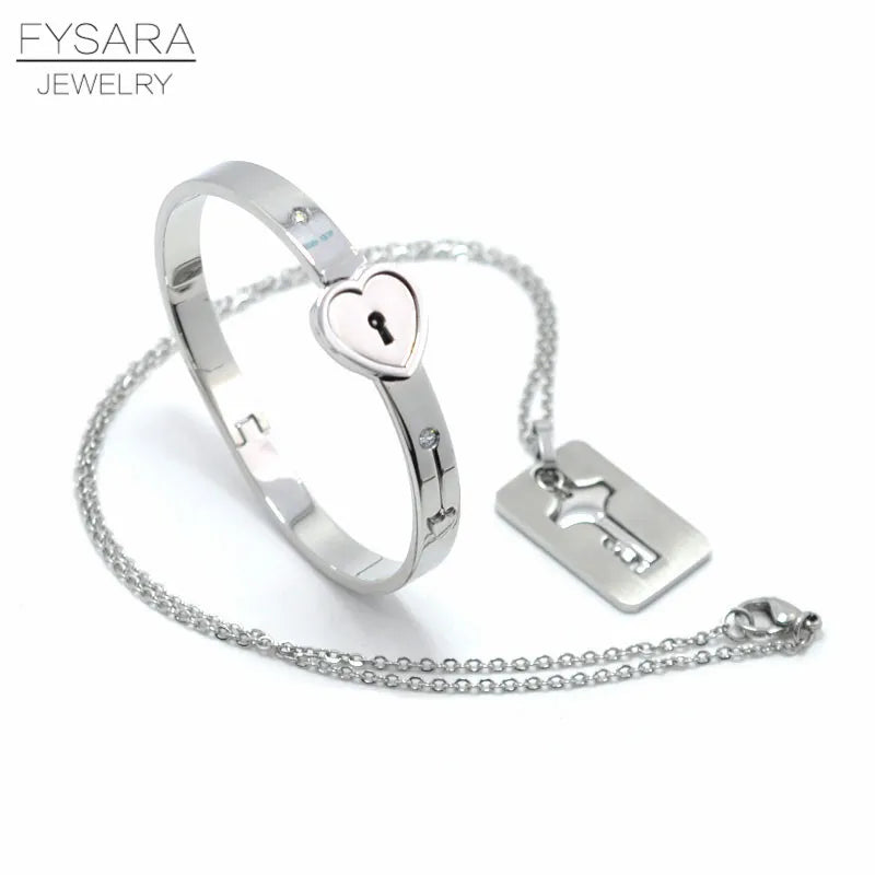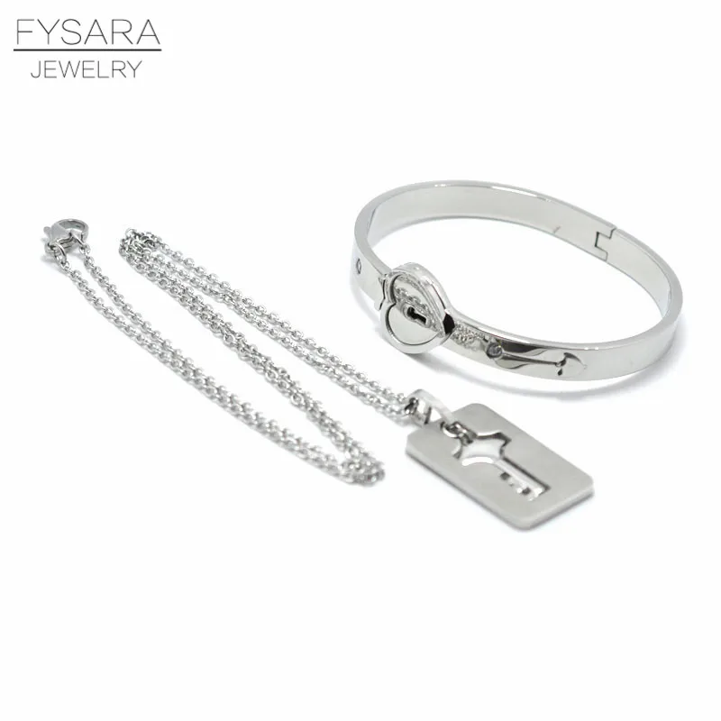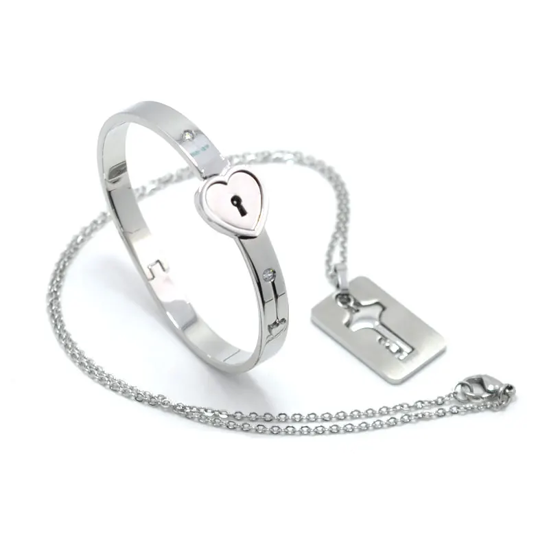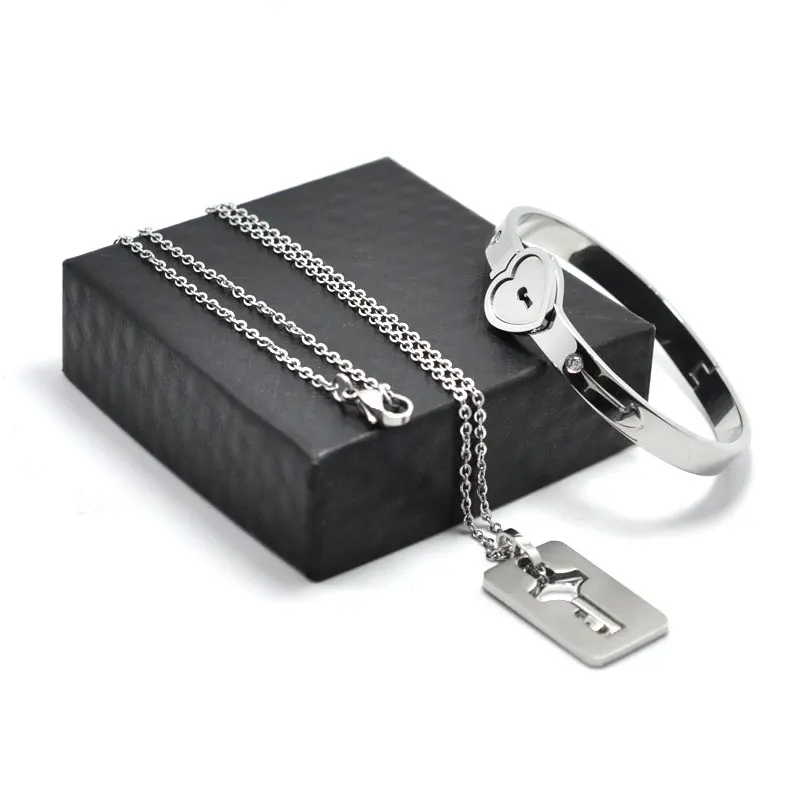 Lock & Key Jewelry Set for Couples – Stainless Steel Bracelet and Necklace Symbolizing Eternal Love