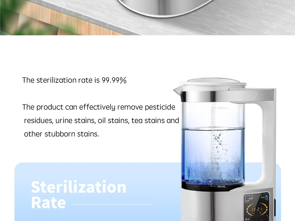 Ensure safe and hygienic water wherever you go with this portable electric sodium hypochlorite water generator. Conveniently powered by a wide-range 100–240 V input, it forms up to 2 liters of disinfecting hypochlorous acid solution in minutes—ideal for travel, emergencies, or daily sanitation at home and work.