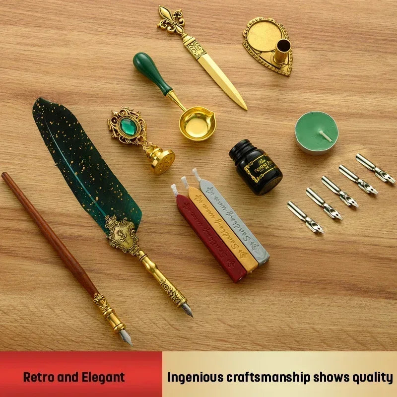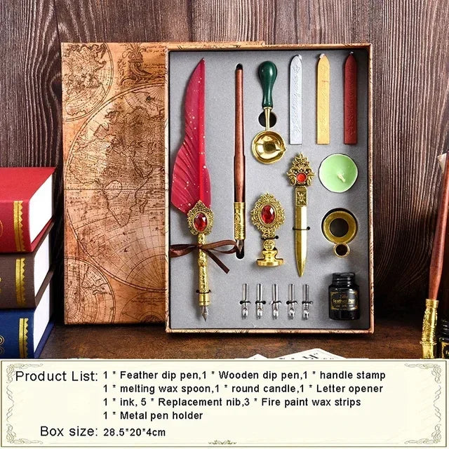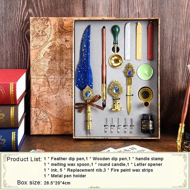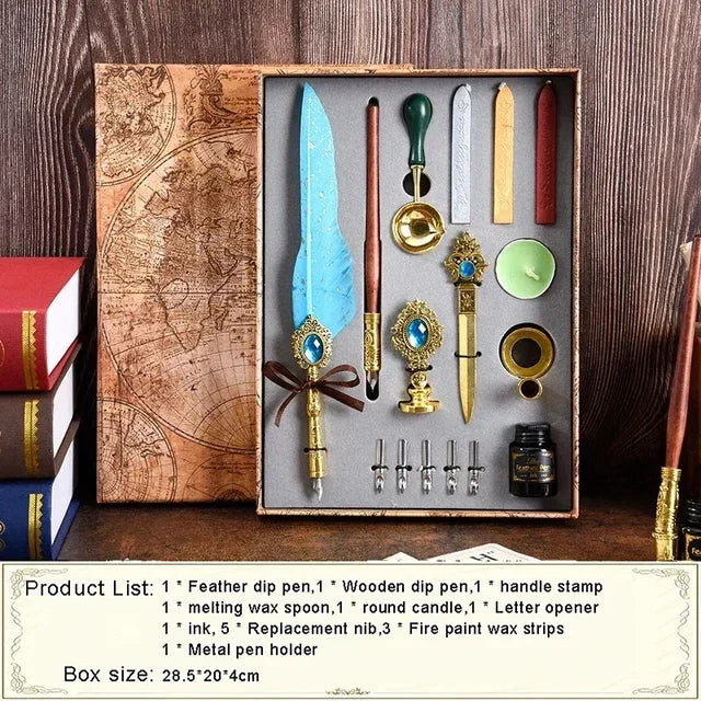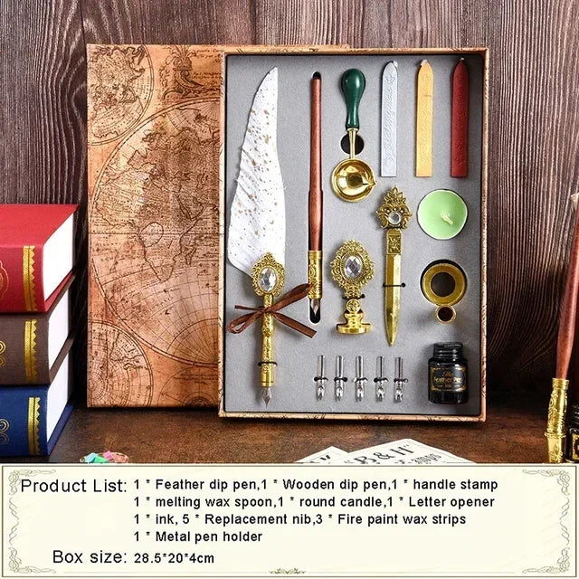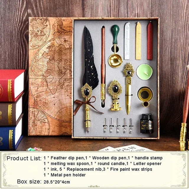 Bring the elegance of traditional handwriting back to life with this Antique Feather Dip Pen & Wax Seal Kit. Designed for lovers of calligraphy, vintage art, and old-world charm, this set makes a timeless gift or a refined personal treasure.