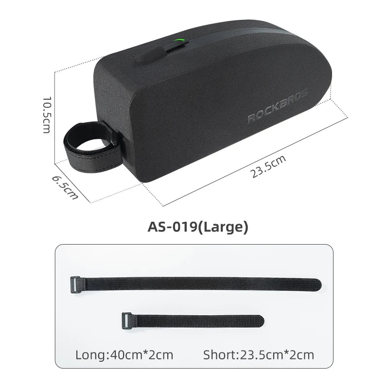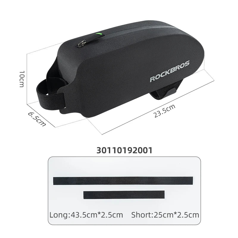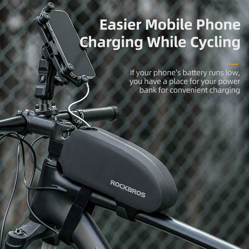 Keep your essentials secure and accessible with this durable ROCKBROS top tube bike bag. Featuring a waterproof hard shell, sleek aerodynamic design, and large interior capacity, it's perfect for holding your phone, tools, snacks, or wallet on long rides. Fits most MTB and road bikes—an essential accessory for cyclists who value function and performance.