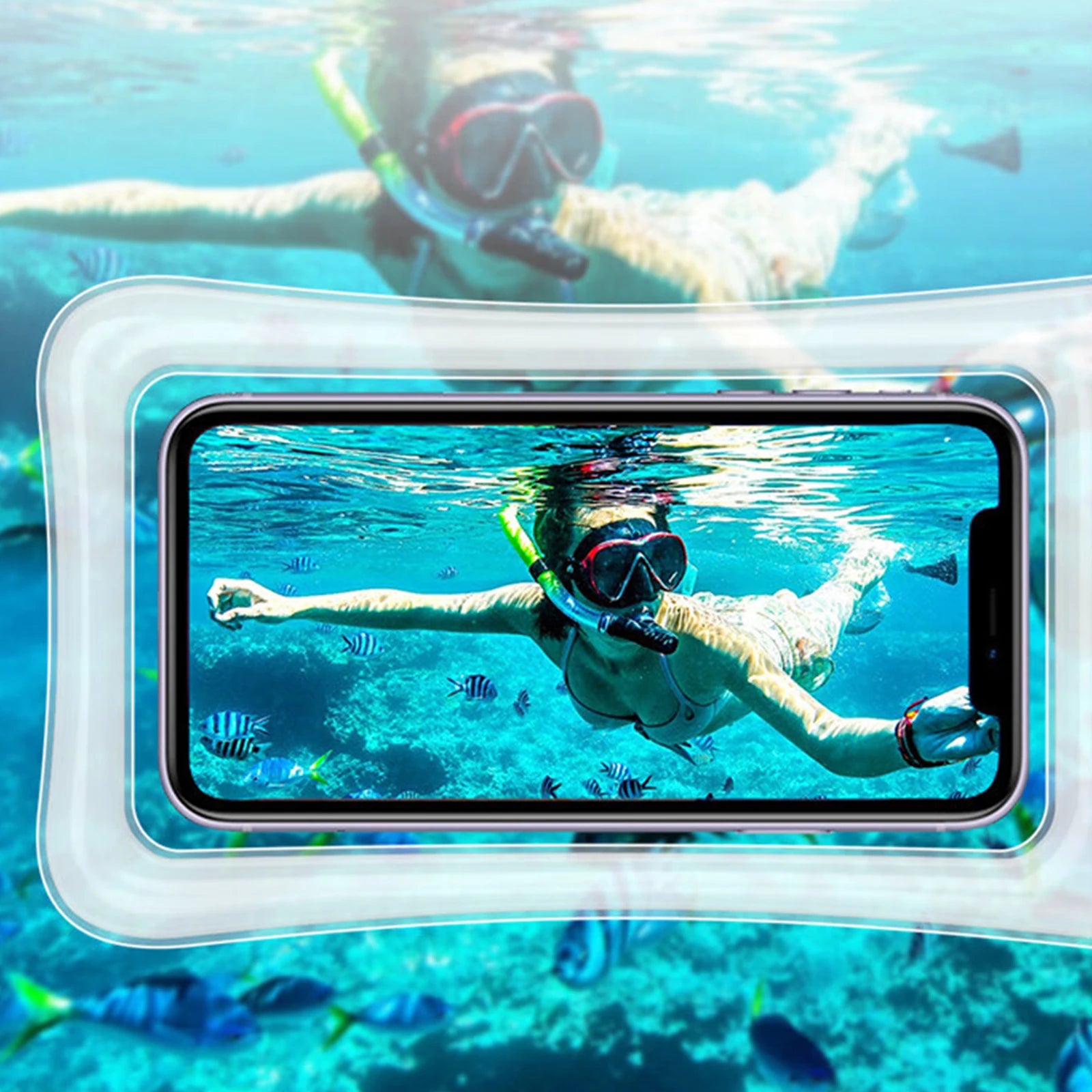 Keep your phone safe, dry, and fully functional—no matter where the water takes you. This waterproof pouch is designed for swimming, diving, drifting, and even skiing, with a secure seal that protects against splashes, submersion, and sand. Clear, touchscreen-friendly windows let you capture underwater photos and check messages without removing your device. Perfect for the beach, pool, or snow-packed trails.