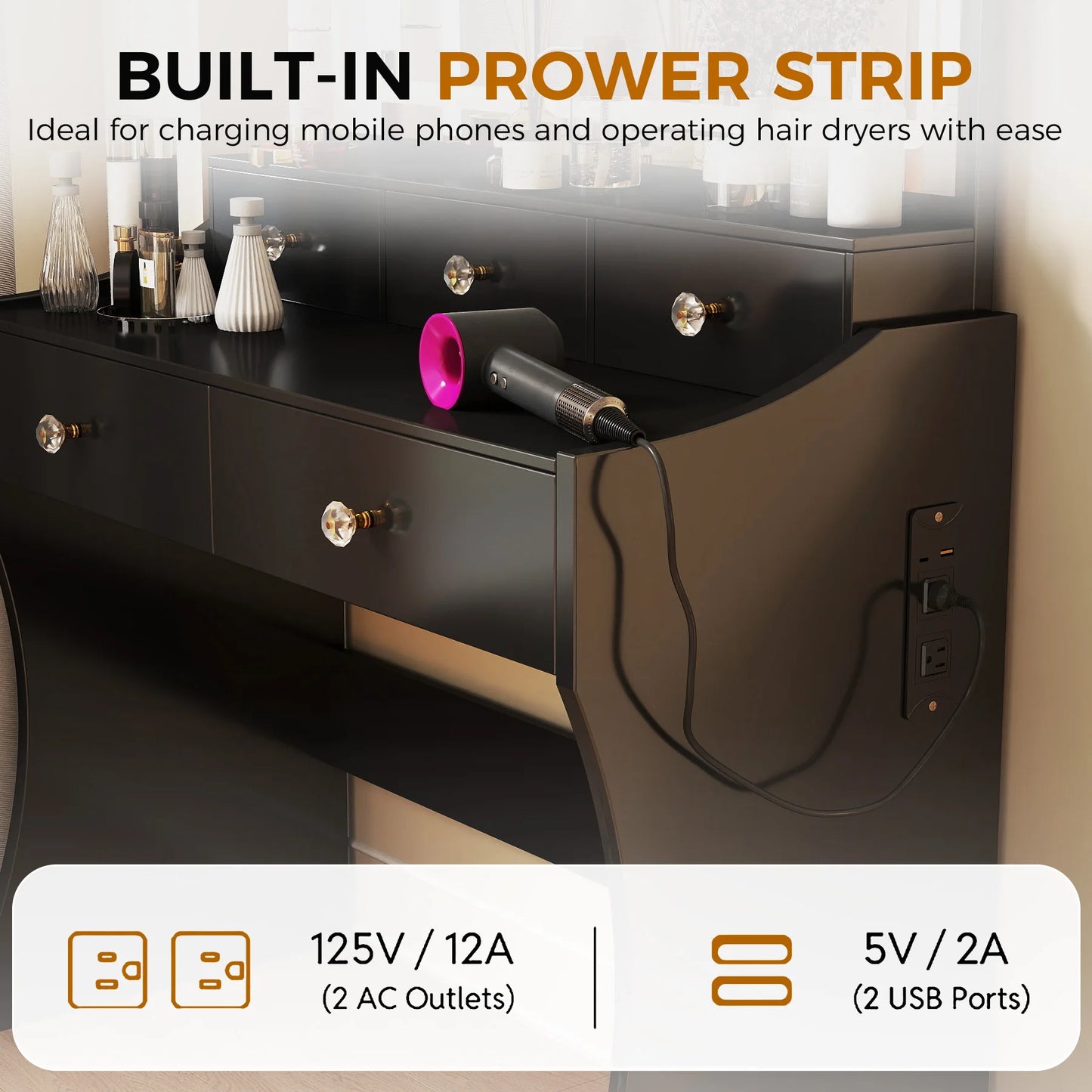 Upgrade your self-care space with this chic vanity set. Featuring a soft-lit LED mirror, 4 roomy drawers, and a built-in charging station, this elegant setup blends beauty and function for your bedroom sanctuary.